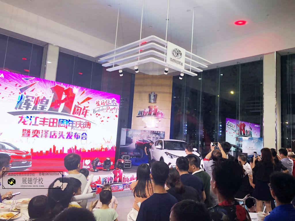 2018年9月10日,佛山展翅咖啡調(diào)酒西點(diǎn)培訓(xùn)學(xué)校的調(diào)酒師學(xué)員工受邀為龍江豐田慶典提供雞尾酒,調(diào)酒技能與雞尾酒品質(zhì)都頗受全場(chǎng)好評(píng)。“酷炫、駕趣、安全”定位的是豐田汽車嗎?怎么感覺更適用在調(diào)酒上呢?既快且準(zhǔn)且狠還出情趣,連原本想著只關(guān)注汽車的大款也因此成為雞尾酒的俘虜。