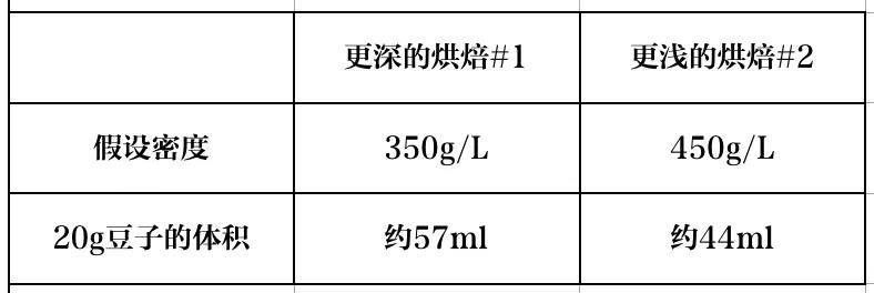 1、 即使生豆不一樣,其實你也可以通過直接測量熟豆密度,協助判斷一款既定熟豆的體積。