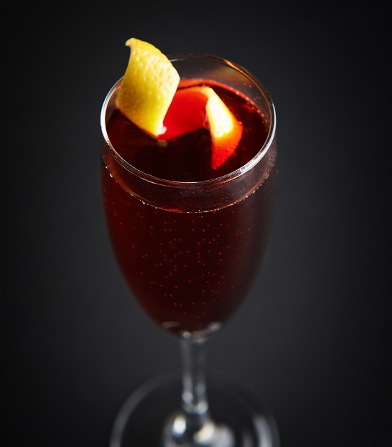 *在酒吧烘烤釋放香味將葡萄酒外所有的食材搖勻,伴隨桃紅起泡酒倒入一個香檳杯中,用擰過的檸檬皮扭進(jìn)行裝飾